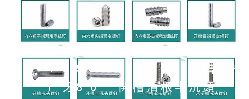 (鐵板牙自攻螺絲) B-2: Plastic Tapping Screw. (塑膠用,自攻螺絲) C: Wooden Screw : 木工螺絲 D: Drywall Screw :水泥墻螺絲 E: Self Drilling Screws鉆尾螺絲(不銹鋼鉆尾螺絲,復合材料鉆尾螺絲) F:膨脹螺絲,四片膨脹螺絲又 1)開槽普通螺釘多用于較小零件的連接。它有盤頭螺釘、圓柱頭螺釘、半沉頭螺釘和沉頭螺釘。盤頭螺釘和圓柱頭螺釘的釘頭強度較高,瑁在普通的部件連接上;半沉頭螺釘的頭部呈弧形,安裝后它的頂端略外露,且美觀光滑,一般用于儀器或精密機械